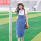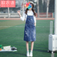 破洞牛仔背带短裙女半身裙中长裙宽松吊带裙韩版学院风连衣裙包臀