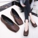 韩国新品平底单鞋女简约浅口软皮方头舒适休闲复古懒人豆豆奶奶鞋