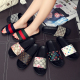 2017春秋欧美风秋冬方头小单鞋漆皮铆钉平底鞋平跟百搭女鞋懒人鞋
