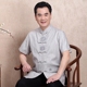中老年唐装短袖男士套装夏季衬衫立领中式盘扣宽松大码改良爸爸装