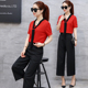 2017夏季新款短袖V领性感时尚气质显瘦阔腿裤子套装女名媛两件套