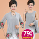 中老年女装夏装套装雪纺衫宽松中年妈妈装民族风短袖两件套40-50