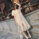 2017夏装新款韩版网纱拼接连衣裙长裙 宽松荷叶边裙鱼尾裙中长款