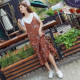 韩版碎花雪纺背带连衣裙春夏新款时尚荷叶边吊带裙不规则裙打底裙