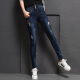 破洞牛仔裤女九分裤女夏季薄款小脚裤女士弹力大码修身显瘦铅笔裤
