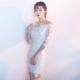 旗袍春款2017新款夏季短款包臀伴娘服时尚一字肩宴会女日常连衣裙