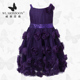 欧美品牌童装女童纱裙儿童吊带连衣裙紫色百褶公主裙中大童纱裙