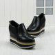 里外全皮时尚女鞋欧洲站流行魔术贴圆头内增高深口单鞋子厚底鞋