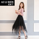 时尚两件套装连衣裙女2017夏装新款韩版五分袖小衫收腰半身纱裙子