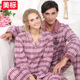 美标春夏新款男女士纯棉情侣长袖睡衣套装全棉格子可外穿家居服