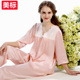 美标女士春秋款贡缎睡衣两件套装夏季纯棉薄款全棉质清新家居服
