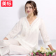 美标2017女士春秋桑蚕丝丝绸高贵家居服夏季长袖真丝睡衣两件套装