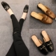 2017夏季新款粗跟方根拖鞋女夏时尚外穿方头半拖方扣装饰英伦女鞋