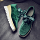 春秋方头厚底系带高跟松糕底丝绒面深口坡跟女鞋红色蓝色绿色单鞋