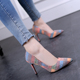 杂志款欧美尖头水钻浅口高跟鞋春夏季新款中空细跟女鞋宴会单鞋潮