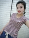 夏季新款V领细条纹短袖T恤女上衣韩版修身显瘦后背交叉女装打底衫