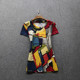2017夏季新款女装短袖印花色图案网纱雪纺拼接宽松百搭t恤上衣
