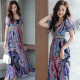 夏季条纹印花雪纺连衣裙女 波西米亚民族风长裙v领沙滩裙海边度假