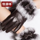 恒源祥女士真皮手套触屏冬季加绒加厚保暖五全指骑行羊皮手套骑车
