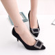 2016春季新款高跟单鞋细跟尖头绒面铆钉方扣气质女鞋工作鞋