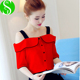 短袖雪纺衫女夏2017新款红色雪纺上衣超仙韩版修身漏背v领喇叭袖