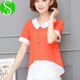 雪纺衬衫女夏2017新款半袖上衣宽松荷叶边娃娃领衬衣短袖大码女装