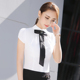 蝴蝶结衬衫女短袖2017夏季新款修身职业拼接百搭韩版白色雪纺衬衣
