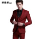 好意郎男士休闲西装三件套韩版新郎结婚礼服酒红色西服套装男式潮
