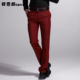 好意郎 男士西裤 男韩版修身西装裤男式商务休闲英伦裤子 酒红色