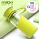 MIGO新品透明玻璃杯0.45L 带盖硅胶套车载玻璃水瓶 创意便携水杯