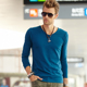 2017春秋季小V领T恤男士纯色长袖 复古风百搭青年潮流男装打底衫