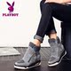 花花公子女鞋冬季新款厚底内增高休闲鞋真皮加绒运动黑色高帮棉鞋