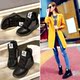 花花公子女靴秋冬季真皮英伦马丁靴短筒工装靴机车短靴牛筋底皮靴