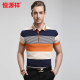 恒源祥男士短袖t恤 夏装翻领丝光棉中年条纹翻领polo衫男商务体恤