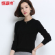 恒源祥羊毛衫女短款毛衣女修身套头低领新款百搭打底衫圆领针织衫