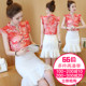 小碎花连衣裙夏季女2017新款修身显瘦两件套夏装无袖套装鱼尾裙