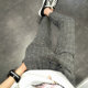 2017春夏新款韩版宽松休闲显瘦小脚裤子 格子棉麻哈伦裤女九分裤