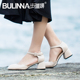 步琳娜2017春季新款方头粗跟单鞋百搭浅口一字扣女鞋中跟玛丽珍鞋