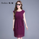 埃伦2016春季新款宽松飘逸真丝女连衣裙圆领短袖时尚气质桑蚕丝裙