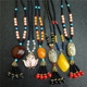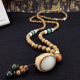 手工原创民族风木珠毛衣链长款男女佛珠配饰龙牌吊坠文艺项链装饰