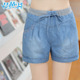 少女夏装牛仔裤新款韩版少女中学生宽松牛仔短裤女松紧腰休闲裤子