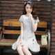 少女连衣裙夏装新款2017韩版修身中长款裙子甜美蕾丝中学生连衣裙