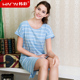 韩彩男士居家套装纯棉睡衣男夏季短袖起居服薄款大码家居服套装夏