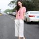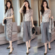 2017春夏雪纺衬衫优雅简约时尚宽松两件套修身显瘦7分阔腿裤套装