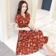 雪纺连衣裙女夏季2017新款女装韩版时尚印花荷叶边袖中长款碎花裙