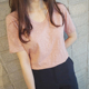 韩版简约百搭棕色修身套头五分袖中袖半高领针织衫女打底半袖毛衣