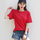 t恤女 短袖2017夏装新款韩版宽松中袖上衣学生纯棉红色打底衫体恤