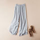 2016夏季新款女装欧美时尚高腰显瘦双层棉麻阔腿裤休闲裤开叉长裤