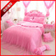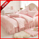 婚庆韩版公主花边蕾丝四件套粉色床裙结婚床上用品纯棉贡缎被套