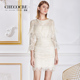 茬客2017欧洲站夏装性感镂空V领白色蕾丝连衣裙名媛修身短裙潮牌